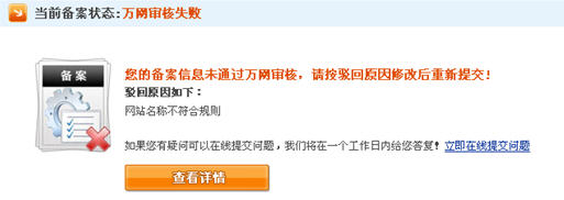 7、萬網(wǎng)審核失敗