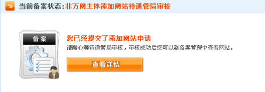17、非萬網(wǎng)主體添加網(wǎng)站待通管局審核