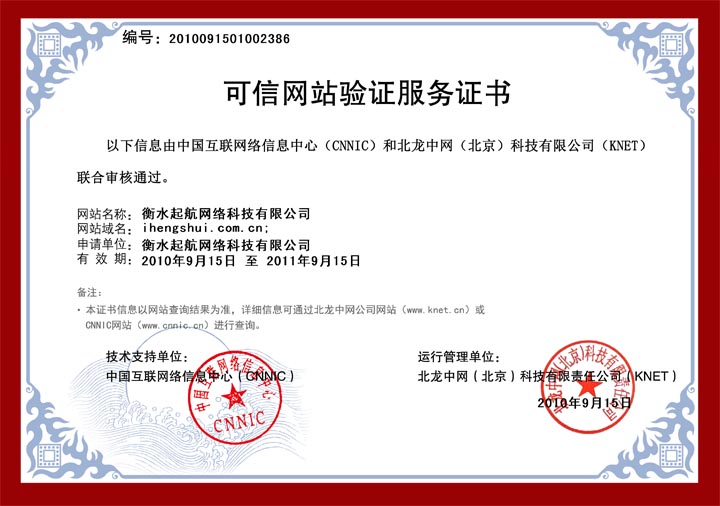 熱烈慶祝衡水起航網(wǎng)絡科技有限公司順利通過CNNIC可信網(wǎng)站驗證!